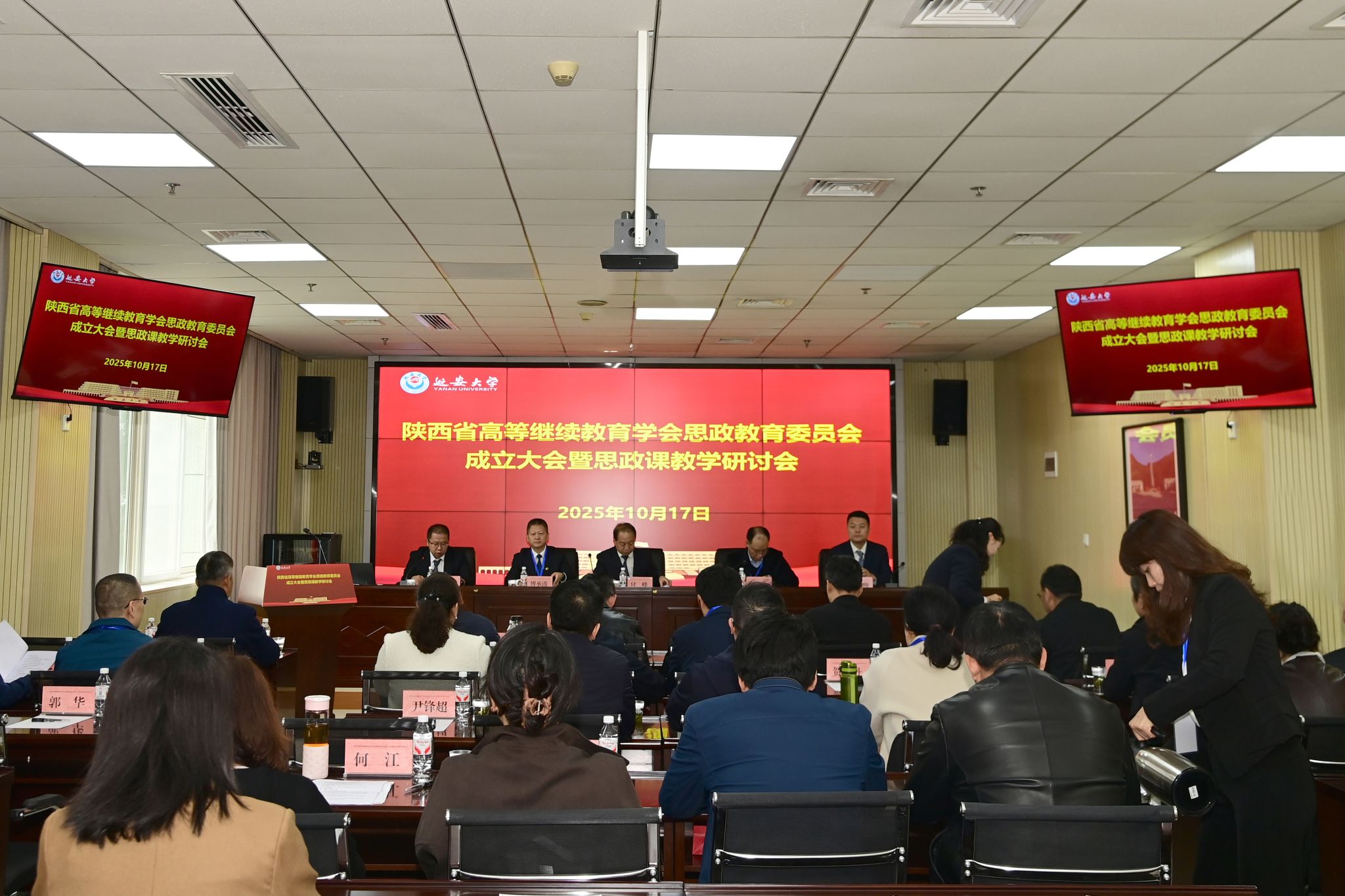 10月17日,陕西省高等继续教育学会思政教育委员会成立大会暨思政课教学研讨会在我校举行,继续教育学院具体负责承办。延安大学党委委员、副校长付峰,陕西省高等继续教育学会副会长、秘书长、西北大学继续教育学院党总支书记叶培哲,陕西省高等继续教育学会副会长、长安大学继续教育学院院长涂帅,陕西省高等继续教育学会副会长、延安大学继续教育学院院长傅承涛以及陕西省高等继续教育学会、学会思政教育委员会成员、学会部分参会会员单位的34位代表同志参加了会议。会议由第一届思政教育委员会秘书长、延安大学继续教育学院副院长高亭主持。会上,付峰与涂帅共同为“思政教育委员会”揭牌。叶培哲宣读了《关于成立学会思政教育委员会的通知》及陕西省高等继续教育学会思政教育委员会组成人员名单。延安大学继续教育学院副院长张仲宁宣读了《陕西省高等继续教育学会思政教育委员会管理办法》。