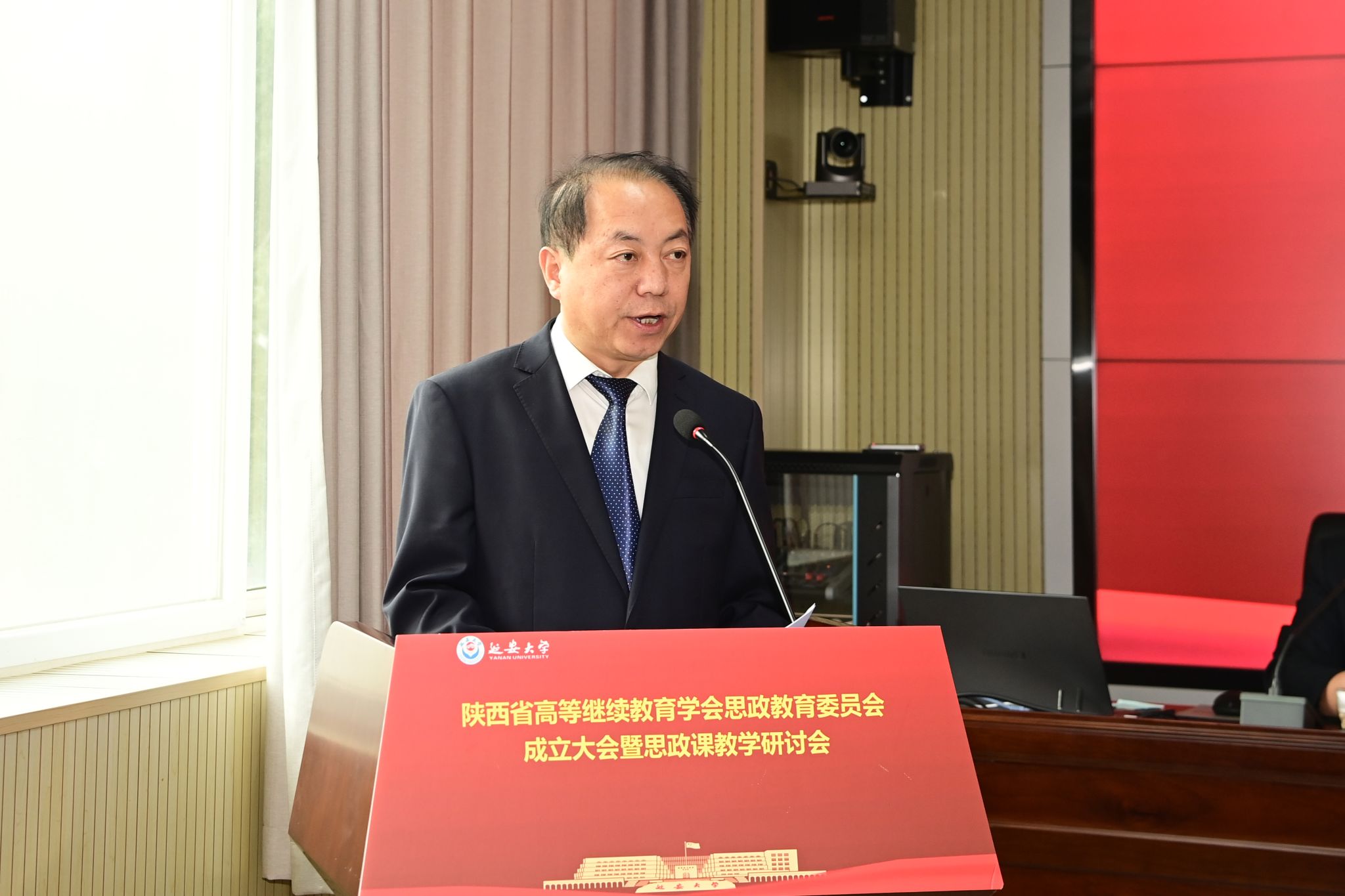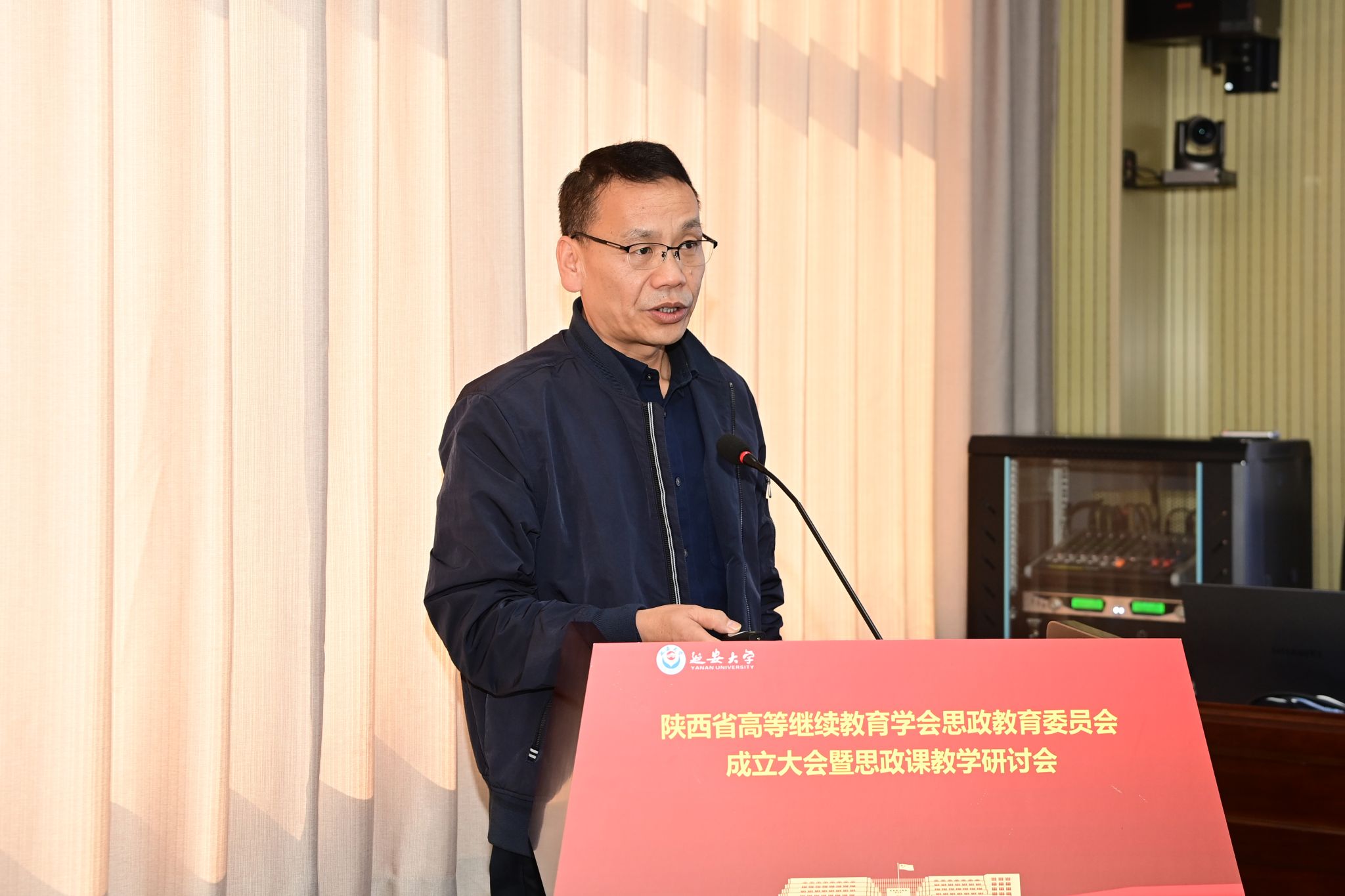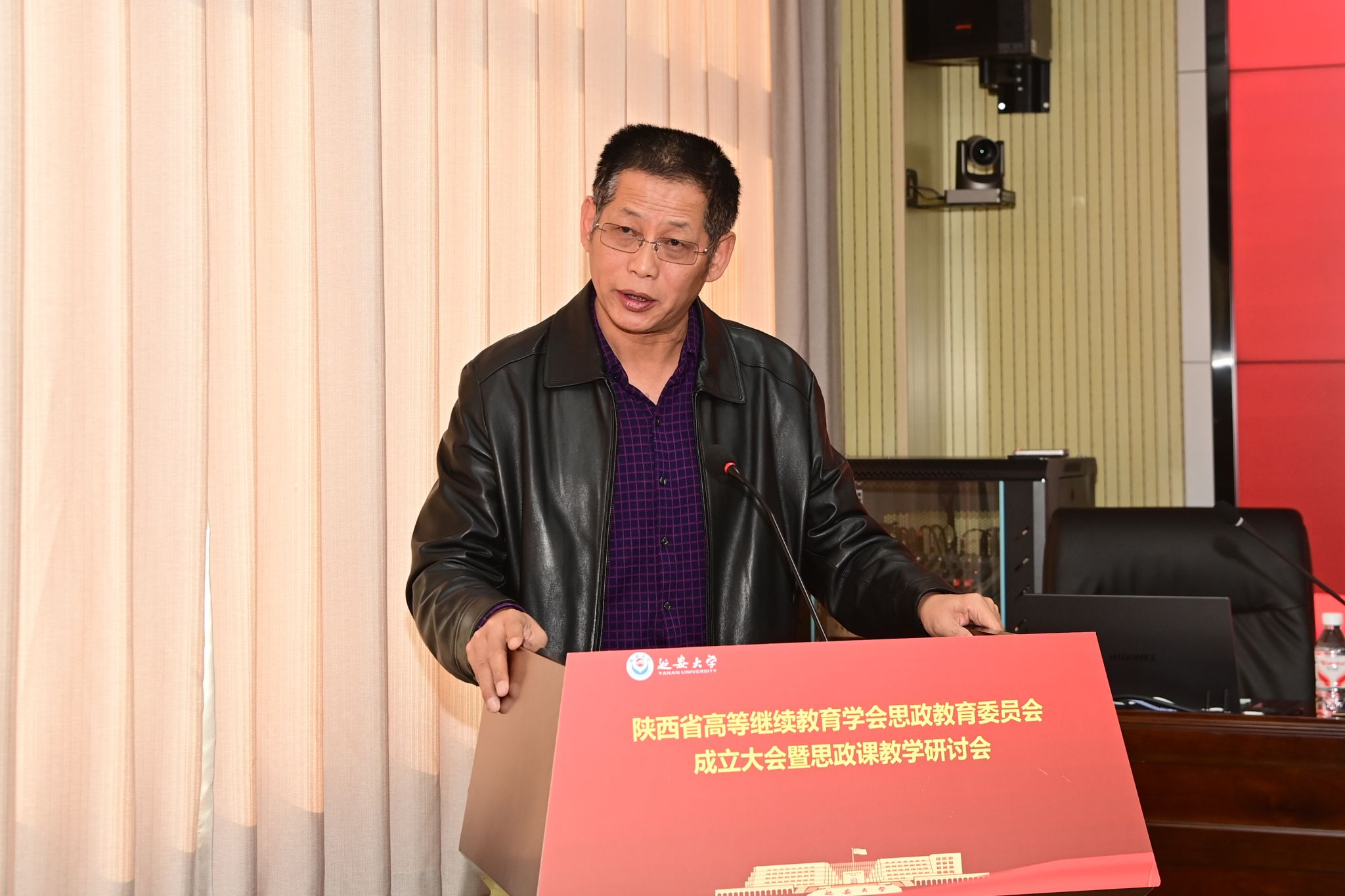 涂帅在致辞中指出,成立学会思政教育委员会是深入贯彻习近平总书记重要指示精神、落实立德树人根本任务的关键举措,要进一步讲好道理、用好方法、选好师资,不断深入做好继续教育思政工作。希望委员会成立后,一是汇聚力量,搭建资源共享的课程平台;二是注重研究,建立同频共振的学术平台;三是协同育人,构建广泛参与的创新平台;四是促进交流,不断扩大社会影响,为开创陕西省高等继续教育思政工作新局面,为培养担当民族复兴大任的时代新人作出应有贡献。会议第二阶段,延安大学继续教育学院院长傅承涛, 陕西师范大学远程教育学院党总支书记刘建军,陕西开放大学马克思主义学院院长王锋,西安石油大学继续教育学院党总支书记张凌寒分别做了交流发言。延安大学马克思主义学院教授惠小峰作了《感悟延安精神 弘扬延安精神》专题报告。
